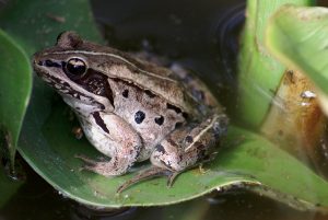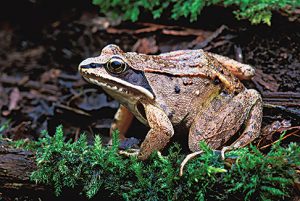 | Predators | Bigger frogs, ribbons snakes, garter snakes, water snakes, skunks, raccoons, mink, and herons prey on adult wood frogs; tadpoles vulnerable to diving beetles, salamander larvae, and water bugs; Eastern newts, leeches, and aquatic insects feed on wood frog eggs |