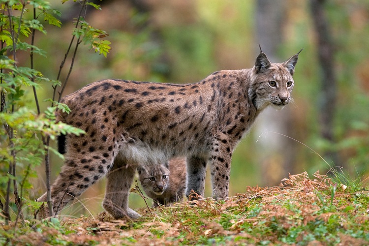 Once the gestation period is completed, the mother gives birth to a litter of kittens. The young ones, although born blind, open their eyes after 10-12 days. The Eurasian lynx babies originally have grayish-brown hair but achieve the reddish-brown hue at 11 weeks. The kittens are introduced to solid food at about 7 weeks and are completely weaned at 5-6 months. Even though they leave the den 2-3 months after their birth, they remain under their mother’s care for about 10 months. They become sexually matured at around 2-3 years of age.