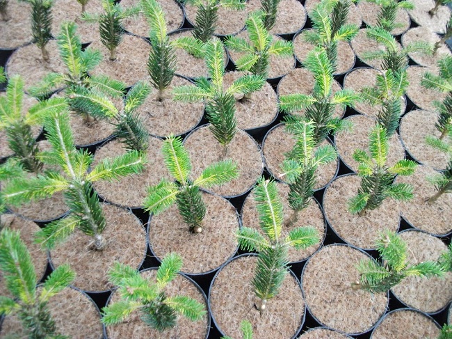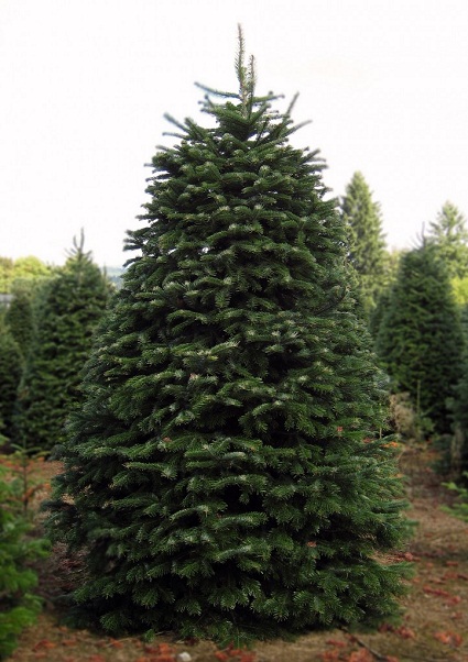 Foliage of the noble fir is of light blue-green color while the Nordmann fir has dark green foliage.