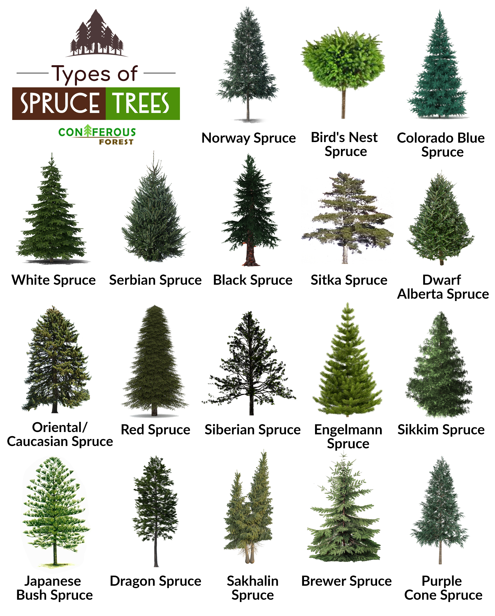In addition to these spruce species, several cultivars exist including ‘Dwarf Alberta Spruce’, ‘Black Hills Spruce’, ‘Coerulea’, ‘Echiniformis’, ‘Jean’s Dilly’, ‘Pendula’, ‘Pixie’, and ‘Rainbow’s End’.