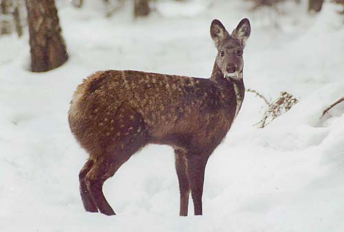 A male deer marks out its territory by wiping strong-smelling secretions on the surrounding plants and trees. Although this may overlap with the feeding range of one or more females, trespassing of male deer is not allowed, and if it occurs, fights may follow.