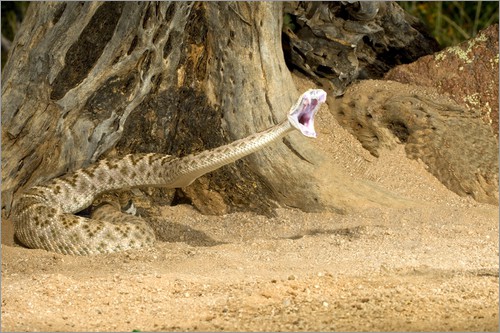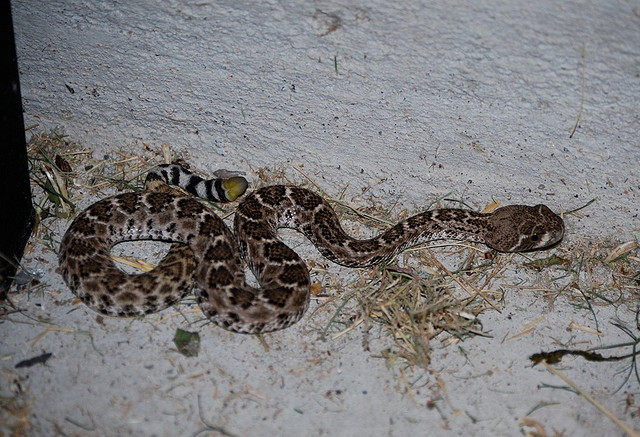 The western diamondback rattlesnake is mostly diurnal during spring and fall and nocturnal during summer. These snakes like to hunt in the night by ambushing prey as they fall in its trail, or even enter their burrows to attack them. They have the ability to swallow animals much larger than its size.