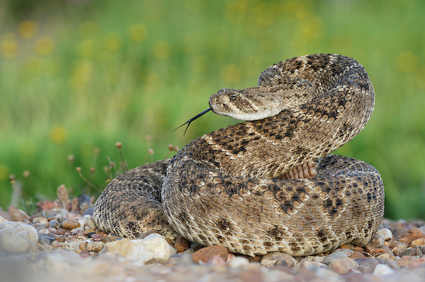 This rattlesnake likes to coil itself near the shade of bushes or cactus plants on pleasant days. When someone approaches the snake, it makes no movements so that it does not get detected. If this fails, it will assume a striking posture, give off its defensive warning rattle and try to go towards the nearest shelter. However, if it is threatened, it will defend its territory by assuming a fearsome stance and bite its intruder without hesitation.