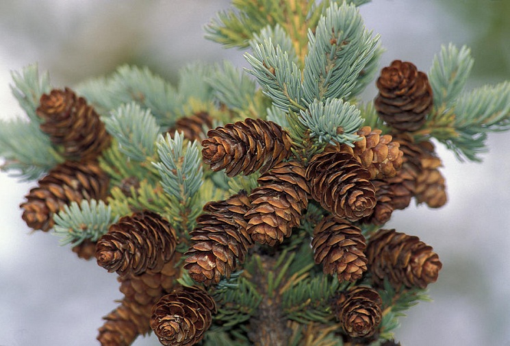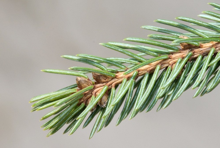 | Identification | Height: 50-100 ft. when mature Needles (Leaves): Rigid, evergreen, 1/3 to 3/4inches long, the cross section is square, and the tips are pointy but not sharp, green to grey-green, pungent odor when crushed;needles borne on a woody peg Trunk Diameter: 3.3 feet Cones: Cylindrical, pendulous, slender, 1.25-2.75 inches long, 0.63 inches wide, flexible scales, thin, green or reddish, pale brown when mature Seeds: Black, 0.09-0.13 inches in length and with a winglengthof 0.19-0.31 inches, pale brown in color |